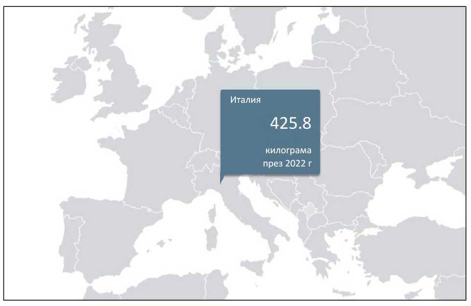 | Държава – 2022 г. | Килограми |