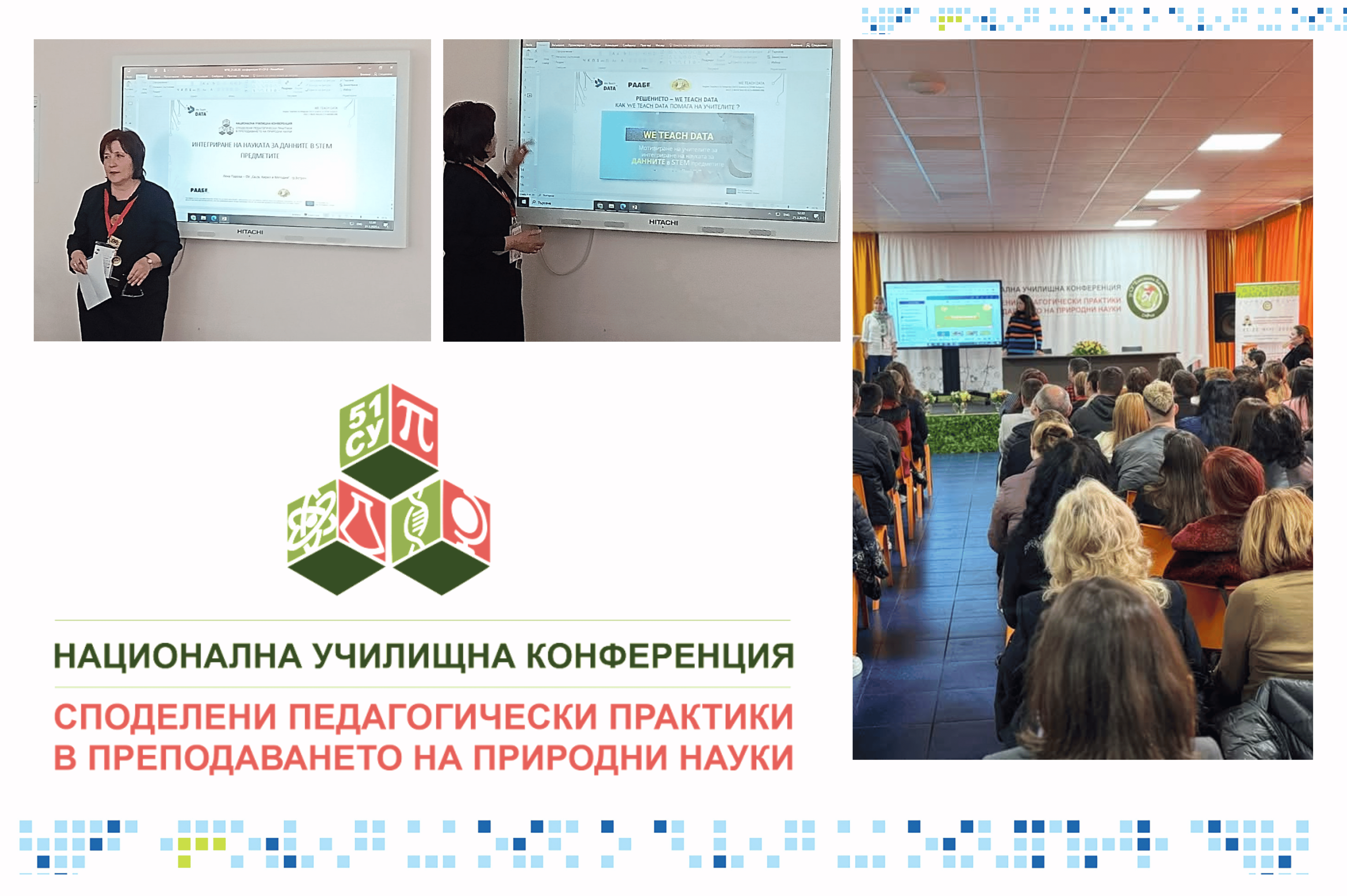 We Teach DATA project and the developed Master Class and School Box were successfully presented by our partners from “St. st. Cyril and Methodius“ primary school – Vetren town at the National School Conference in Bulgaria “Shared Pedagogical Practices in Science Teaching”, which was held in Sofia, Bulgaria between 21 and 22 March, 2025.