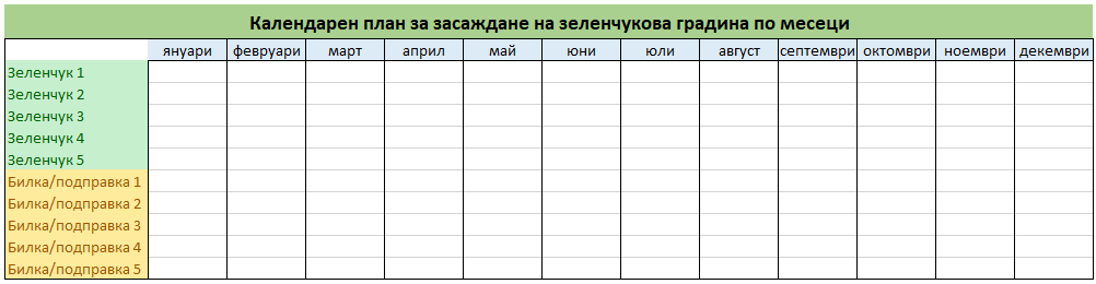 - Изгответе календарен план за засяване/засаждане на вашата зеленчукова градина с избраните зеленчуци и билки/подправки, като използвате Excel.