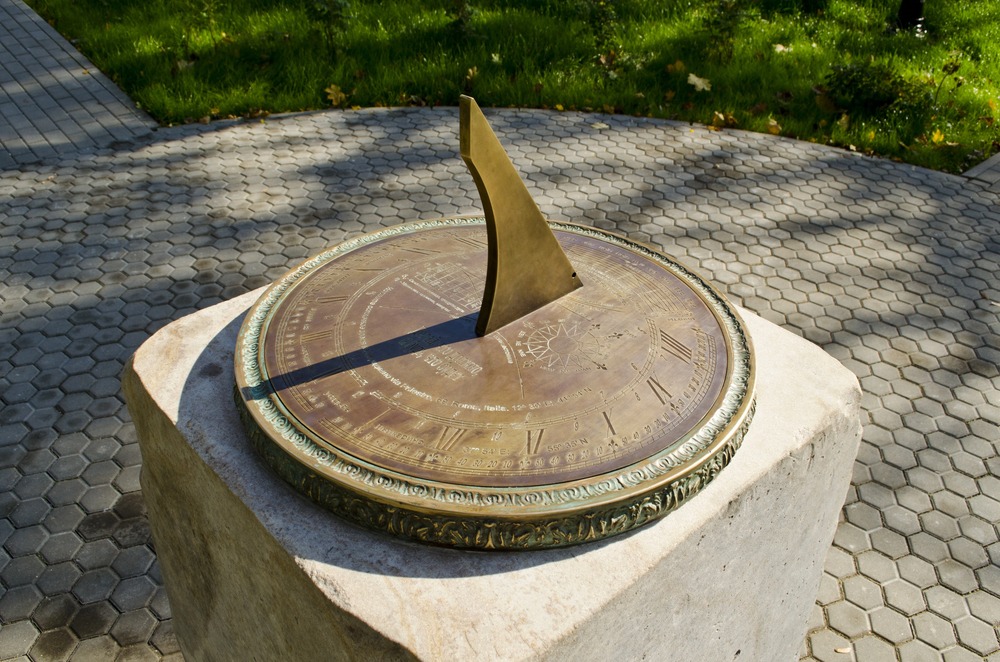 Слънчев часовник. Източник: https://st.depositphotos.com/1811961/1379/i/600/depositphotos_13799656-stock-photo-the-sundial-in-the-park.jpg