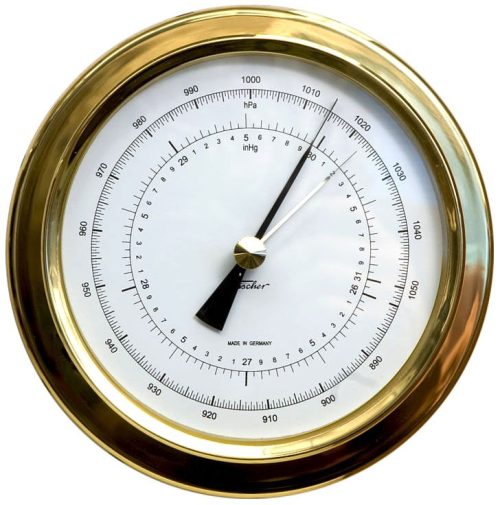 - Анероиден барометър (анероид) – най-често използваният барометър днес. Основната му част е херметично затворена метална вакуумна кутия. Силата на налягането на въздуха действа върху гъвкавите стени на кутията отвън. Силата на натиск на сгънатата пружина в уреда действа срещу нея. В резултат на това кутията се деформира, промените се предават на стрелката, която отчита налягането върху скàла.