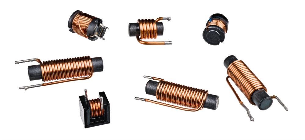 Соленоид. Източник: https://st2.depositphotos.com/13282202/42654/i/1600/depositphotos_426546296-stock-photo-set-solenoid-coils-black-ferrite.jpg